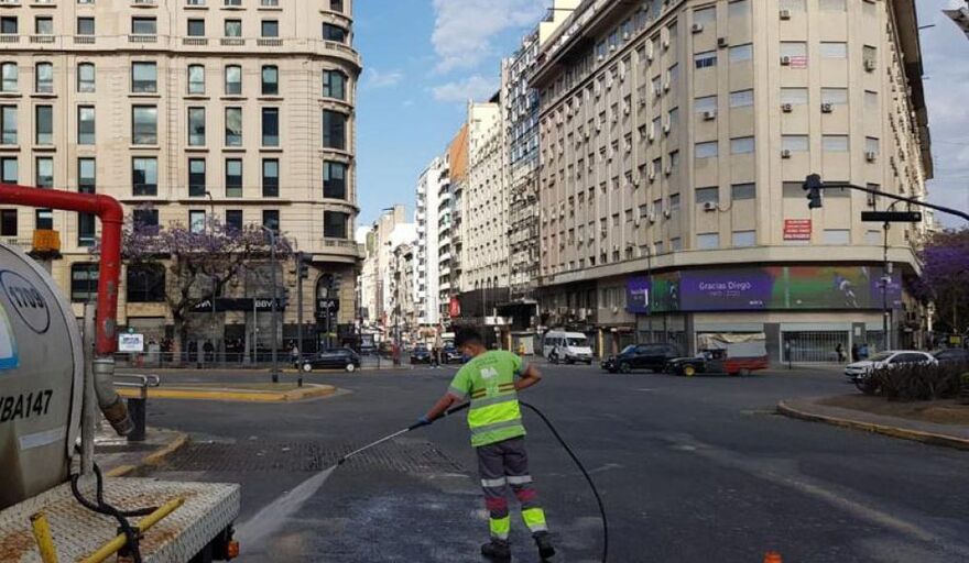 Las tareas consistieron en barrido y repaso de recolección de residuos, las cuales fueron permanente durante toda la jornada del velatorio de Diego Maradona, para luego dar lugar a las tareas de hidrolavado y desinfección con hipoclorito de calzada y vereda.