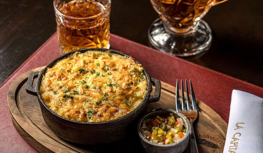 Entre los principales más elegidos del menú, se encuentra el pastel de papa favorito de Juan Perón servido al hierro, gratinado y relleno de ternera braseada al horno de barro; la milanesa a la napolitana con papas fritas o puré; y el osobuco A la Antigua, braseado con champiñones y acompañado de boniatos.