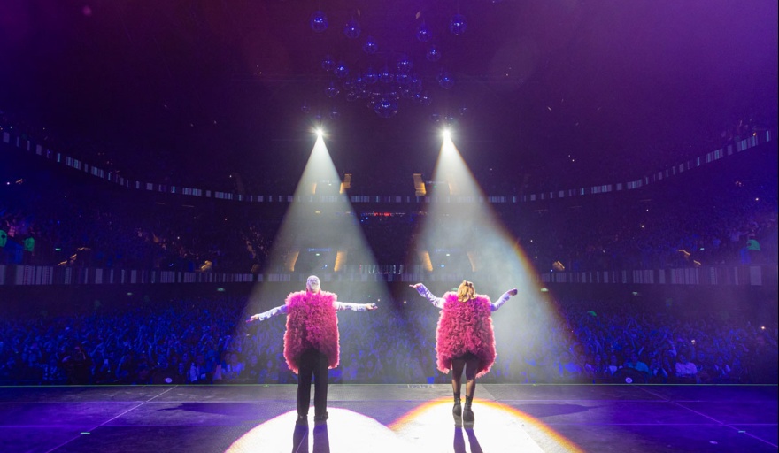 Sobre el final, 40 bolas de espejos de todos los tamaños que colgaban del techo fueron iluminadas rebotando reflejos por todo el estadio dando lugar a una fiesta sin igual, convirtiendo el Movistar Arena en una discoteca gigante.