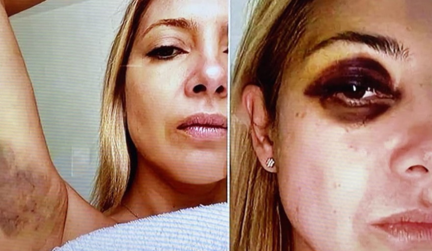 Las imagenes mostraban a la mujer en muy mal estado, por caso, con el ojo derecho totalmente morado, mientras que en otra situación, un golpe la marcó en la zona de su axila derecha.