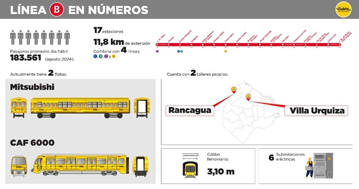 Además, para complementar la renovación de la flota, se realizarán obras de infraestructura que acompañen el proceso de modernización. Se incrementará la potencia de la catenaria a 1.500 voltios. Actualmente, la Línea B es la única que opera a 600 voltios. Esto significará la incorporación de tecnología más moderna y producirá un ahorro energético.