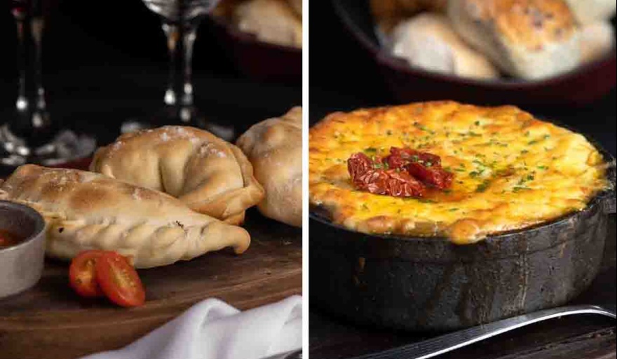 La propuesta incluye una empanada al horno de barro, un principal a elección (Pastel de papa del General; Canelones de verdura con salsa mixta; Ternera braseada con papas doradas o Milanesa La Capitana con papas fritas) y un postre.