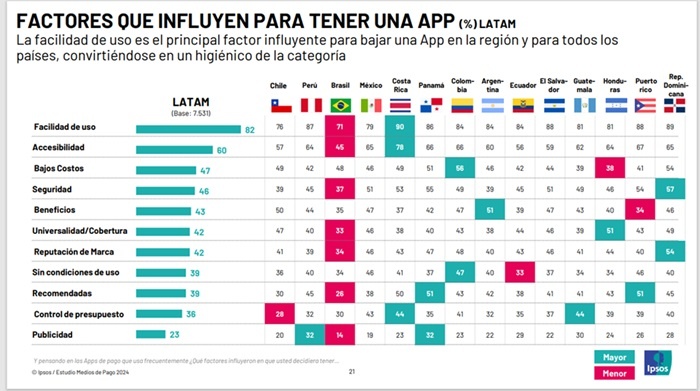 Entre los factores que influyen en la adopción, Argentina destaca por la “facilidad de uso” (84 %) y los “beneficios” (51 %) asociados a estos medios de pago digitales.