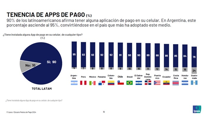 Respecto de nuestro país, se destaca que un 95 % de los argentinos ya utiliza aplicaciones de pago en sus dispositivos móviles, cifra que supera el promedio latinoamericano. Además, Argentina encabeza la región en el uso frecuente de cuentas digitales y transferencias, consolidándose como pionera en la transición hacia un ecosistema financiero que se presenta como más seguro y eficiente. Este liderazgo se da en un contexto regional donde la competencia por el mercado digital es cada vez mayor.