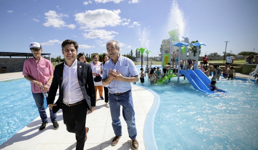 El gobernador de la provincia de Buenos Aires, Axel Kicillof, encabezó este viernes el acto de inauguración de las piscinas infantiles en el Complejo Termal de Tapalqué. Fue junto al ministro de Producción, Ciencia e Innovación Tecnológica, Augusto Costa; y el intendente local, Gustavo Cocconi.