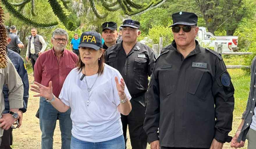 La ministra de Seguridad de la Nación, Patricia Bullrich, junto al gobernador de Chubut, Ignacio Torres, y el presidente de Parques Nacionales, Cristian Larsen, supervisaron el desalojo del grupo de “falsos mapuches” liderado por Cruz Cárdenas, que en 2020 usurpó áreas protegidas del Parque Nacional Los Alerces, en la provincia de Chubut.