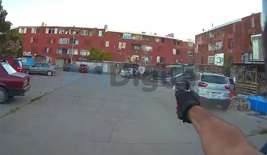 Una frenética persecución policial por las calles de El Palomar acabó violentamente, con tiroteo incluido, en uno de los accesos a la Villa Carlos Gardel, y todo el proceso fue filmado en primera persona por la cámara colocada en el chaleco de uno de los agentes de la Policía Motorizada que lideraba el seguimiento.