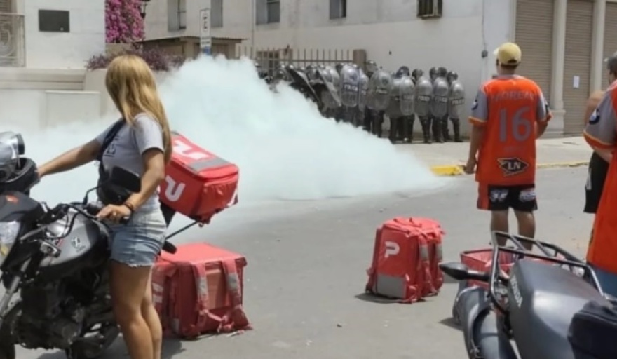 En sintonía, los compañeros de trabajo de la víctima se concentraron con sus respectivas motos. La desesperación de los manifestantes se topó con un cordón policial que respondió con reiterados disparos de balas de goma.