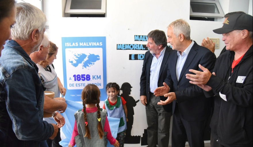 La nueva placa del jardín se enmarca en un proyecto de la DGCyE y el Ministerio de Gobierno que ya se replicó en cinco centros educativos de La Plata con el objetivo de visibilizar la proximidad geográfica de las islas con Argentina.