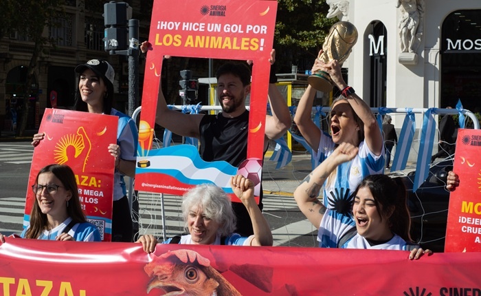 “Hoy salimos a la calle inspirados en algo que define la argentinidad: la pasión por el fútbol”, destacó Romina Viscarret, directora de Sinergia Animal en Argentina., al tiempo que recalcó que “hay otra cosa que nos une a los argentinos: el amor por los animales”.