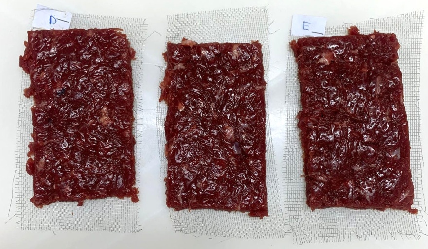 “De esta manera el producto obtenido cumplió con las expectativas y este método de elaboración y formulación fue seleccionado para la obtención de charqui en base a carne vacuna”, comentó Ortiz. A partir de la evaluación sensorial empleando un panel de consumidores, el agregado de estos tres nuevos ingredientes fue efectivo para lograr la mejora sensorial esperada en el charqui a partir de carne vacuna. En cuanto a la apariencia, el producto obtenido presentó una coloración superficial esperada a carne curada y deshidratada, aspecto agradable, algo de brillo, y formato adecuado para su consumo como snack.