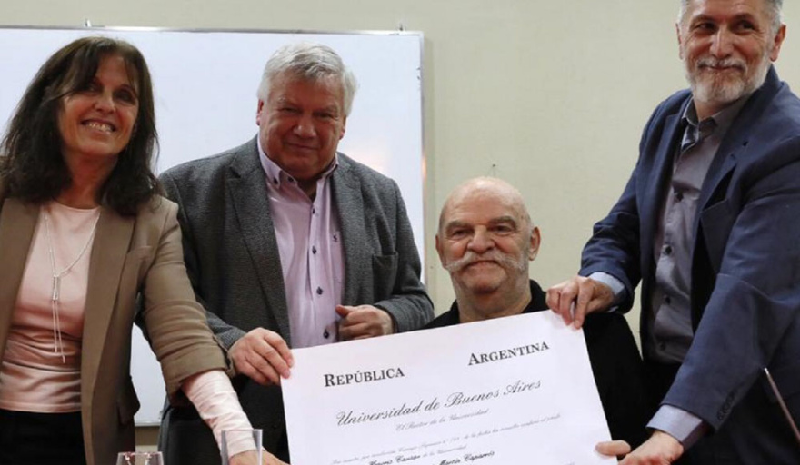 En un acto llevado a cabo en la Facultad de Filosofía y Letras de la UBA, se hizo entrega del título de Doctor Honoris Causa al periodista y escritor argentino Martín Caparrós. Se trata del máximo reconocimiento honorífico que concede la institución a personas destacadas por contribuciones en sus respectivos campos.