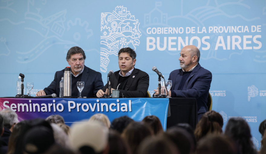 Kicillof expresó: “Este seminario está inscripto dentro de las políticas de un Estado provincial que recuperó sus capacidades de planificación y que comprende, además, que la única manera de transformar la educación pública es con la participación de quienes la construyen día a día”. “Sabemos que hay deserción y dificultades que se agravan por la situación social, pero no nos quedemos quietos: impulsamos políticas innovadoras que, con inversión y un gran compromiso de toda la comunidad, nos permiten revincular a los jóvenes con la escuela para brindarles mejores oportunidades y un futuro mejor”, agregó.