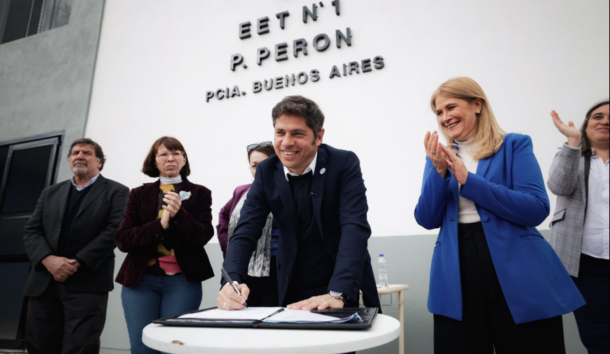 El gobernador bonaerense, Axel Kicillof, encabezó este jueves junto a la vicegobernadora Verónica Magario, la inauguración de las obras de ampliación de la Escuela Secundaria Técnica Nº 1, en el municipio de Presidente Perón. Fue con la presencia del director general de Cultura y Educación, Alberto Sileoni; la intendenta local, Blanca Cantero; y la directora del establecimiento, Rosa Alba Planchich.