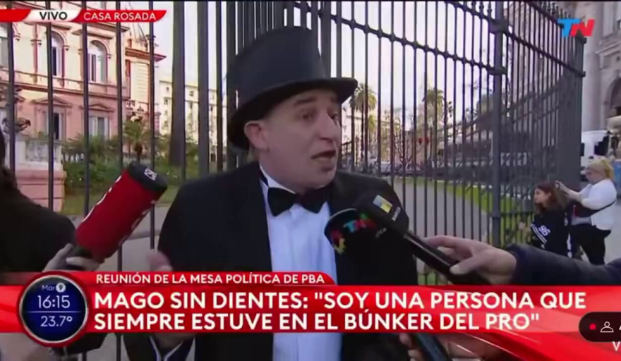 Mientras se llevaba a cabo la foto de la mesa política nacional, Pablo Cabaleiro, más conocido como ‘Mago sin Dientes’, se hizo presente en Casa de Gobierno.