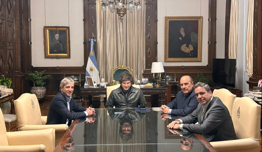 Además del jefe de Estado y el propio Francos, en la foto aparecen el ministro de Economía, Luis Caputo y el flamante ministro del Interior, Lisandro Catalán.