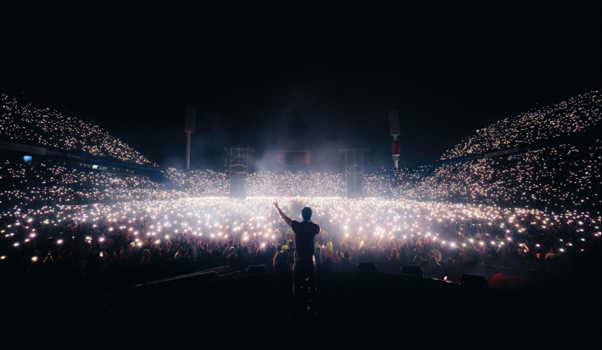 Uno de los momentos más emotivos llegó cuando el show se trasladó a un escenario más pequeño, ubicado en el centro del campo, donde Luck Ra ofreció un set acústico con algunos de sus temas más sensibles y cercanos, generando un clima íntimo en medio de un estadio repleto.