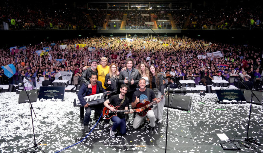 Según reseñó Noticias Argentinas, el Presidente hizo su ingreso al microestadio minutos antes de las 21 y, si bien en el escenario lo esperaba una banda, los organizadores del acto emitieron por los altoparlantes la versión original de “Panic Show” de La Renga, el tema que el mandatario adoptó como leitmotiv desde 2023, pese a la resistencia de la banda oriunda de Mataderos.