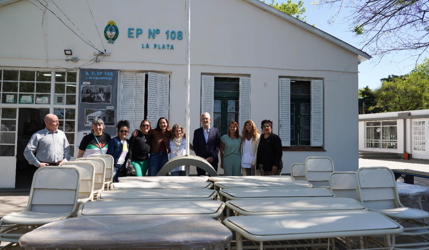 En la primaria de 30 y 697, donde asisten unos 165 alumnos, se entregaron pupitres y sillas nuevas fabricadas en la planta provincial de Tolosa, que fue recuperada en 2020 y hoy da trabajo a más de 150 personas. El mobiliario servirá para equipar por completo un aula del establecimiento, que fue fundado hace más de 70 años.