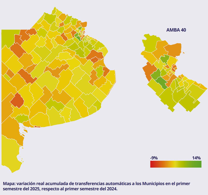 También recordó que “las transferencias a los municipios ya habían mostrado una contracción en el período 2023-2024. En el primer semestre de 2024, registraron una caída real del 4,5 % en comparación con igual lapso de 2023. Al ampliar el análisis al período 2023-2025, la retracción acumulada alcanza un 5,9 % en términos reales”.