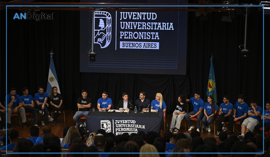 El gobernador Axel Kicillof participó este lunes del acto de renovación de autoridades de la Juventud Universitaria Peronista (JUP) de la provincia de Buenos Aires. Fue en el Aula Magna de la Universidad Nacional de Quilmes, junto al ministro de Gobierno, Carlos Bianco; el rector de la institución, Alfredo Alfonso; la vicerrectora Alejandra Zinni; y el secretario general de la JUP, Juan Pablo Gómez.