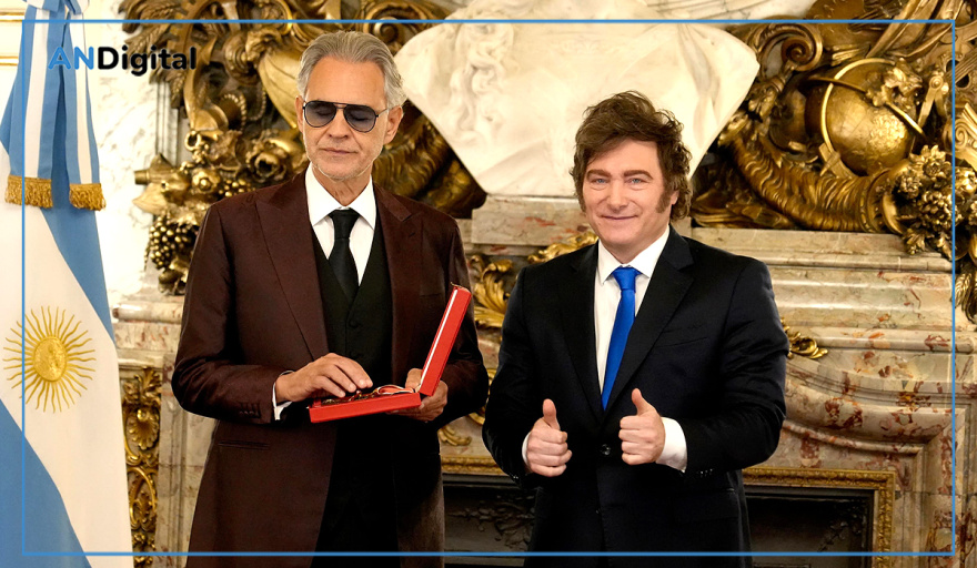 El presidente de la Nación, Javier Milei, recibió y condecoró este miércoles al destacado músico italiano Andrea Bocelli, en la Casa Rosada.