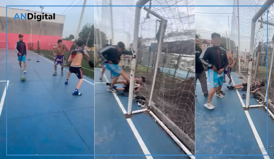 El violentísimo episodio se vivió en un complejo de canchitas de fútbol ubicado en la calle Tonelero, muy cerca de la Ruta 40, del mencionado distrito del Conurbano bonaerense oeste, y la secuencia fue captada por otras personas que estaban en el lugar con sus teléfonos celulares.