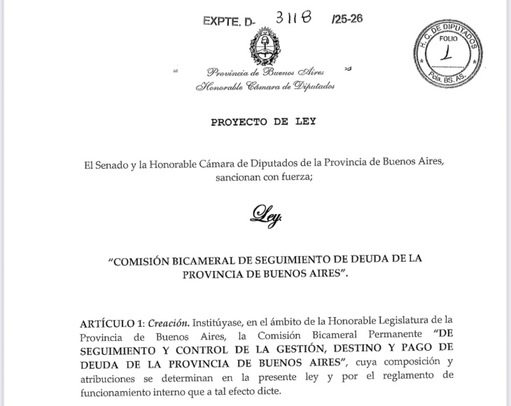 El titular del bloque de diputados Unión y Libertad, Martín Rozas, propuso instrumentar una Comisión Bicameral de Seguimiento y Control de la gestión, destino y pago de deuda de la provincia de Buenos Aires.