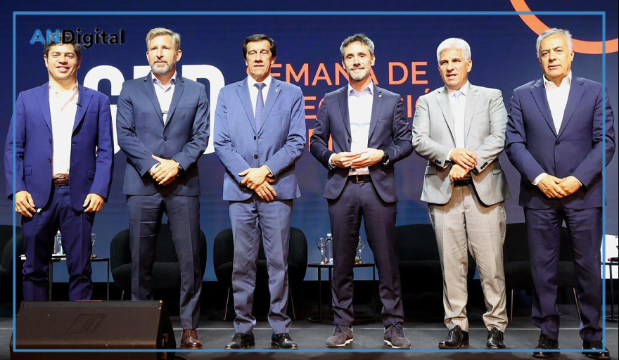 En Parque Norte, además de Cornejo y Kicillof, participaron los mandatarios provinciales Carlos Sadir (Jujuy), Rogelio Frigerio (Entre Ríos) y Claudio Poggi (San Luis).