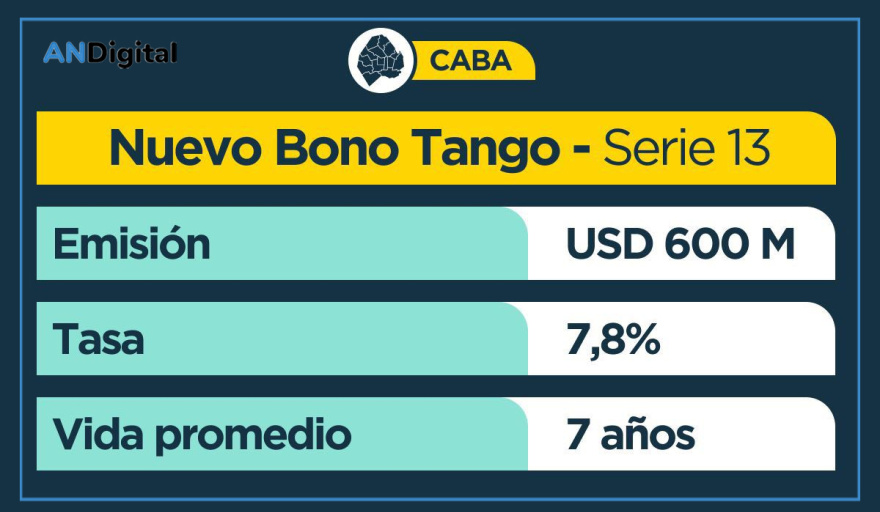 Hoy la Ciudad logró emitir la nueva Serie 13 del Bono Tango por USD 600 millones a una tasa de 7,8%, una de las más bajas de su historia crediticia y con una mejora sustancial en su perfil de… pic.twitter.com/9sf044jFwC