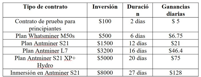 Seleccione un plan de minerÃa que se ajuste a sus objetivos y presupuesto.