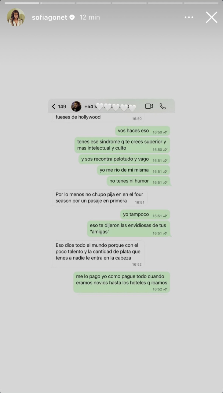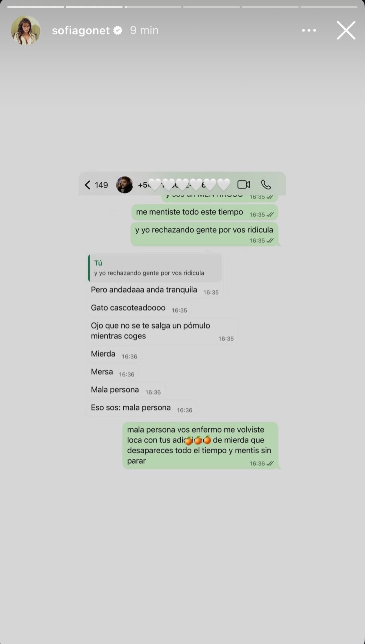 Horas más tarde, Pettinato respondió con un video de casi tres minutos en el que negó haber engañado a su ex pareja y se mostró visiblemente afectado. En ese descargo, reconoció haber dicho cosas hirientes, pero también filtró chats en los que, según él, recibió amenazas y agresiones verbales. “Soporté manipulaciones y amenazas”, sostuvo, al tiempo que aseguró que la situación se volvió insostenible por los celos y los ataques constantes.