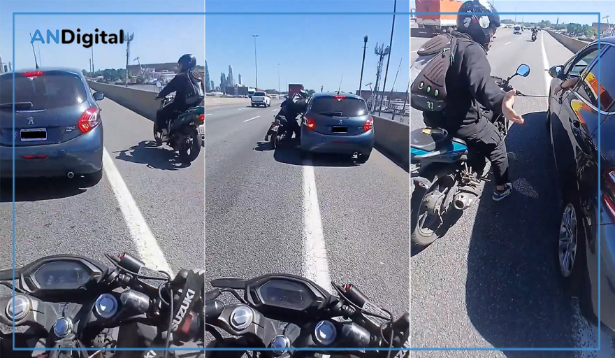 🛣️ Un increíble conflicto entre un motociclista y un automovilista se dio en medio de la Autopista Buenos Aires-La Plata, prácticamente sobre el Riachuelo.