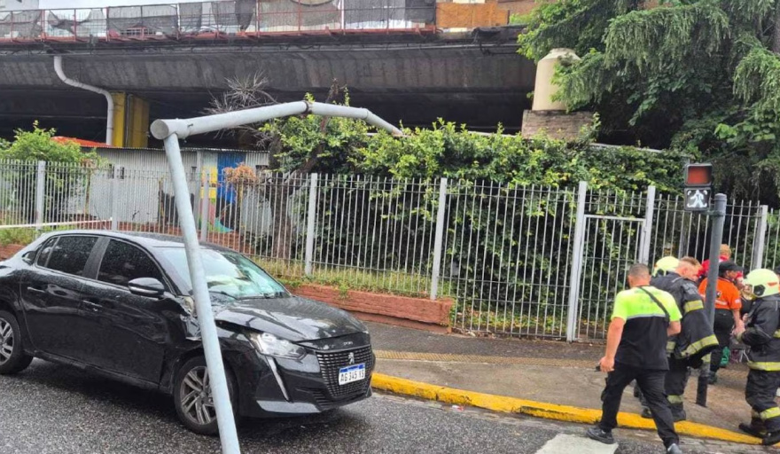 Según se informó, las víctimas se desplazaban en un Peugeot 208 negro cuando la estructura cayó de manera repentina sobre el techo del auto. El impacto provocó importantes daños materiales y dejó a las ocupantes sin posibilidad de salir por sus propios medios, lo que obligó a un rápido llamado de emergencia.