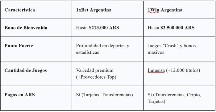 En este año, los apostadores argentinos tenemos opciones de primer nivel. Ya sea que elijas la robustez de 1xBet o la innovación de 1Win, estarás en una plataforma segura que entiende y acepta tus pesos argentinos.