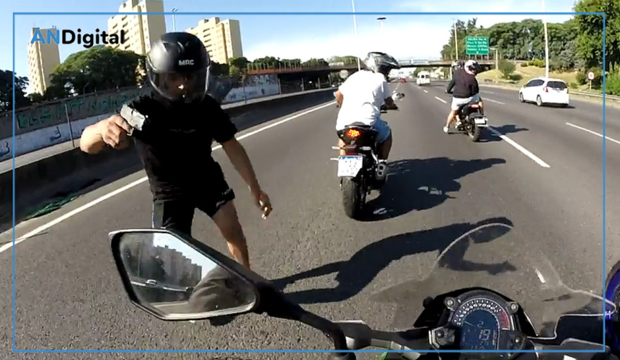 Toda la secuencia fue captada por la cámara en el pecho que Guillermo llevaba colocada, y hay escenas escalofriantes, tanto por la violencia con la que actuaron estos sujetos como por la escaso o nulo sentido de supervivencia ya que frenaron a cero en el carril rápido de una traza muy congestionada en ese momento del día, alrededor de las 17 horas de este domingo.