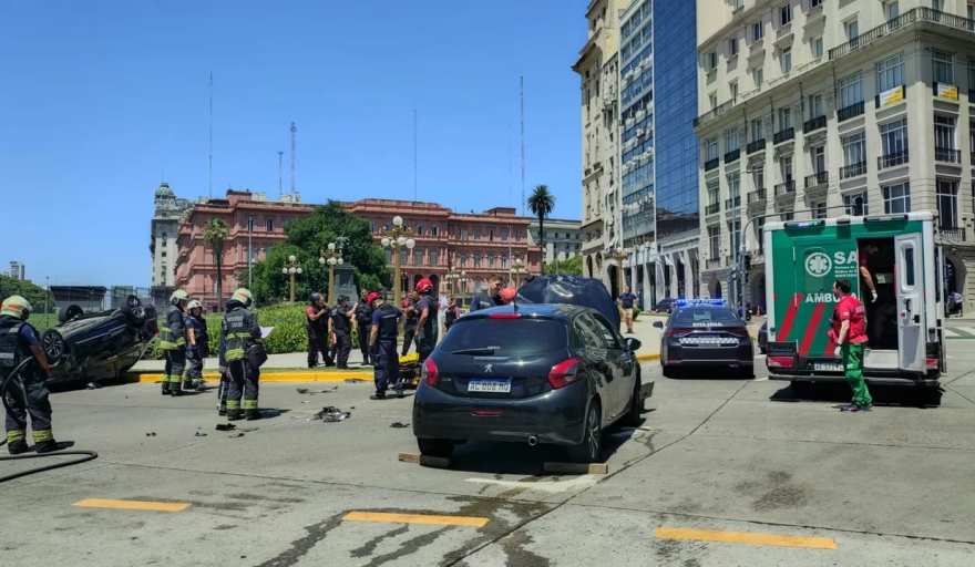 Un fuerte choque seguido de un vuelco generó alarma este domingo por la mañana en pleno Microcentro porteño, a metros de la Casa Rosada, y dejó como saldo tres personas heridas. El siniestro ocurrió en la intersección de avenida Leandro N. Alem y avenida Rivadavia, una zona de alto tránsito incluso durante los fines de semana.