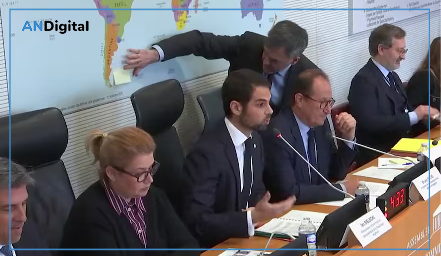 El embajador argentino Ian Sielecki interrumpió su exposición en la Asamblea Nacional de Francia al advertir que detrás suyo se exhibía un mapa que colocaba a las Islas Malvinas bajo soberanía del Reino Unido de Gran Bretaña en un firme planteo que fue celebrado como una defensa clara del reclamo histórico argentino sobre ese territorio.