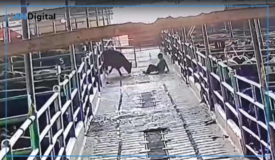 En circunstancias que aún son materia de investigación, el animal embistió al operario con violencia, derribándolo al suelo y tirándosele encima, aunque casi de inmediato desistió de su actitud y huyó de la escena, en una secuencia que fue captada por una cámara de seguridad del lugar.