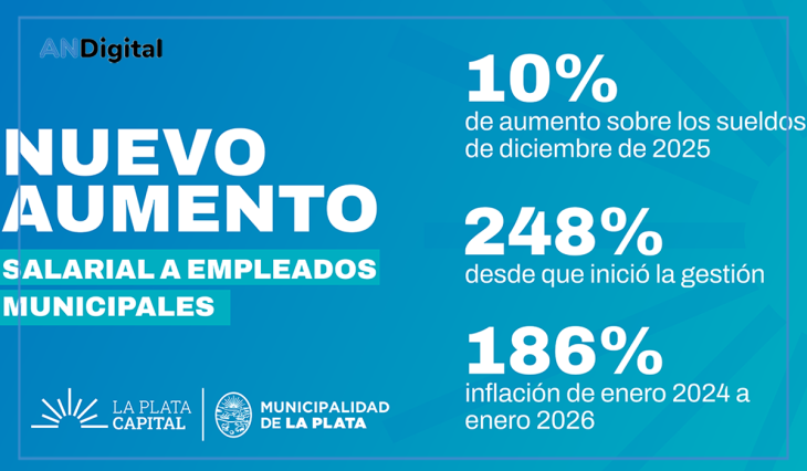 Con esta nueva medida, la suba salarial acumulada entre enero de 2024 y enero de 2026 alcanza un total de 248 % en el Municipio platense, superando por 62 puntos la inflación acumulada del mismo período, estimada en 186 %.