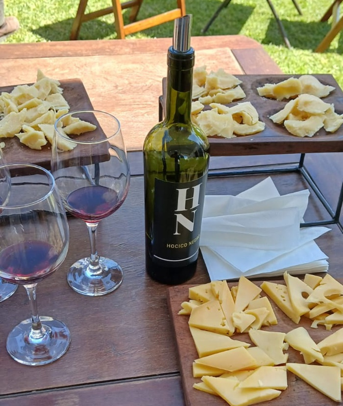 Se trata de una experiencia enoturística con degustación de vinos y quesos, recorrida por pueblo rural y almuerzo en restaurante de campo, organizada por los elaboradores de Hocico Negro.