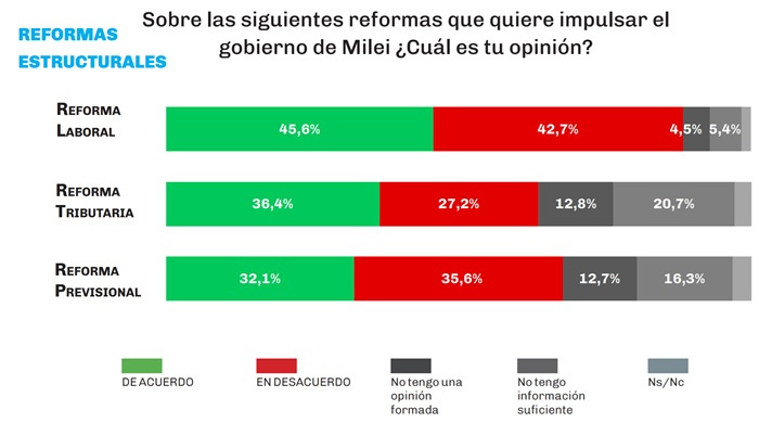 En la antesala de lo que se avecina como un intenso debate parlamentario por leyes que el Gobierno de Javier Milei considera clave, una encuesta arrojó que la imagen presidencial se mantiene estable y los principales proyectos gozan de un aceptable a buen respaldo de la sociedad.