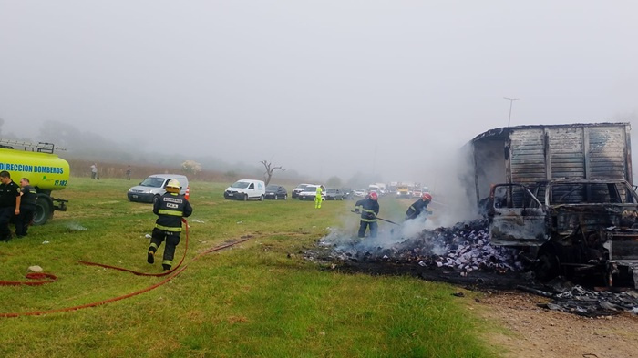 En imágenes registradas en el lugar se observó el intenso trabajo de los bomberos combatiendo las llamas, mientras algunos automovilistas optaban por circular por la banquina e incluso por sectores de pasto lindantes a la autopista para continuar su marcha y evitar demoras.