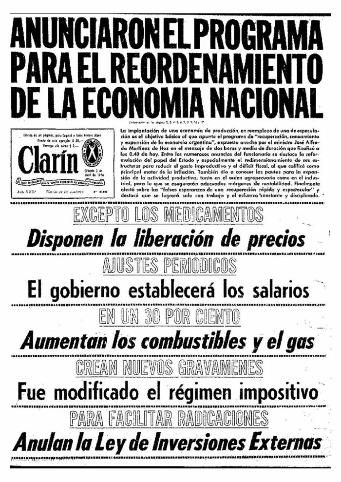 “El 10 de julio de 1980, el ministro de Economía de la dictadura, José Alfredo Martínez de Hoz, hizo un balance de su gestión y destacó ‘12 puntos fundamentales’ a través de los cuales se podía medir ‘la profundidad de la transformación’ que estaban llevado a cabo”, evocó.