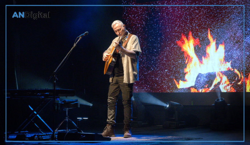 Para estos shows, el consagrado artista eligió una puesta íntima, pero también inmersiva con una pantalla en la que se traducía cada letra al español, mientras él interpretaba cada canción con sus infaltables instrumentos.