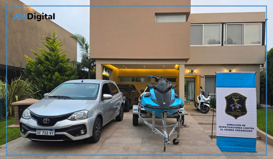 Además, la policía incautó seis vehículos —varios de ellos robados o con patentes mellizas—, dos motos de agua, 21 teléfonos celulares, radios de comunicación, cámaras de seguridad, DVR y equipos tecnológicos.
