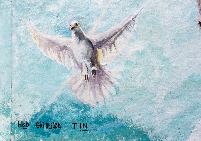 Allí en el mural luce la imborrable y majestuosa figura del Sumo Pontífice. La imagen también está acompañada de dos palomas blancas y un cielo con los colores de nuestro pabellón nacional.