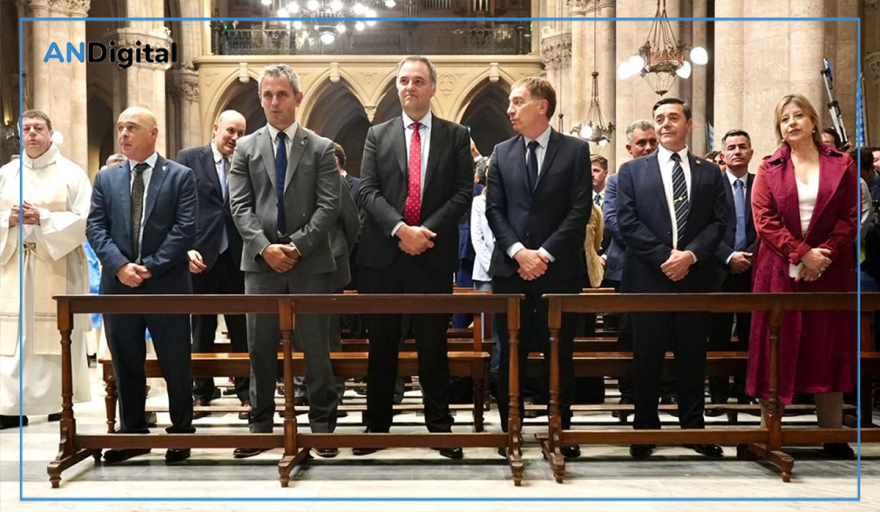 Ante la ausencia del presidente Javier Milei, quien se encuentra en Israel, el jefe de Gabinete fue la principal figura del Poder Ejecutivo en la ceremonia religiosa. Adorni estuvo escoltado por una comitiva de peso que incluyó a la ministra de Seguridad, Alejandra Monteoliva, y al ministro del Interior, Diego Santilli.