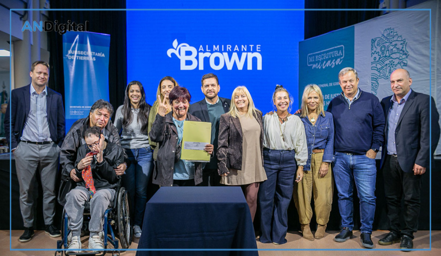 Durante un encuentro llevado a cabo en la Casa Municipal de la Cultura, el diputado provincial Mariano Cascallares; el intendente interino de Almirante Brown, Juan Fabiani; la jefa de Gabinete, Paula Eichel, y el titular del Concejo Deliberante, Nicolás Jawtuschenko, acompañaron en la firma de su escritura a 184 familias de Ministro Rivadavia, San Francisco Solano, Malvinas Argentinas, San Francisco de Asís, Rafael Calzada, Burzaco, Mármol, San José y Claypole.
