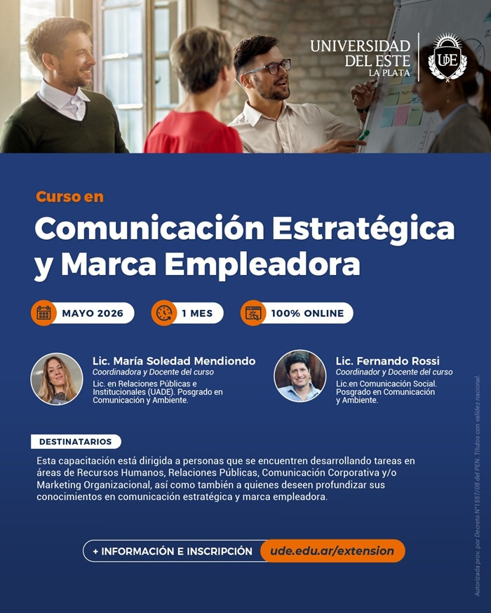 En este marco, la Univerdidad del Este presenta su curso de Comunicación Estratégica y Marca Empleadora. Se trata de un espacio de formación actualizado para comprender el rol central que ocupa la comunicación en el mundo del trabajo actual y en la construcción de una identidad organizacional coherente.